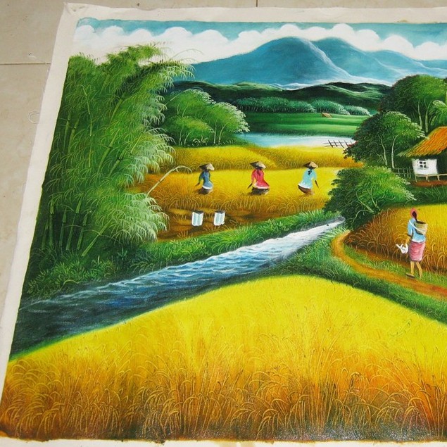 Cara menggambar pemandangan sawah padi dengan menggunakan media campuran. Artinya, setiap tahun, lukisan yang dihasilkan pastilah baru. Jual lukisan pemandangan sawah terasering panen padi yang sangat indah.
